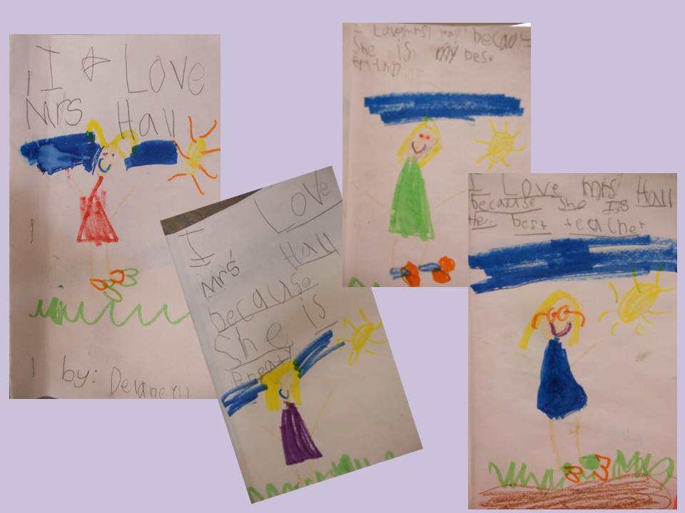 I told this student that she filled my bucket and she really did! The third one is hard to read but it says, “I love Mrs. Hall because she’s my best friend.” Just a reminder of why I teach the grade I do 🙂 Sweetness…