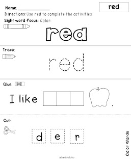 I linked in the youtube video you can watch to go with it. Kelly has all of the songs with pages for the students to fill it. I am using these pages for all the days we talk about color words (which will be foreves).