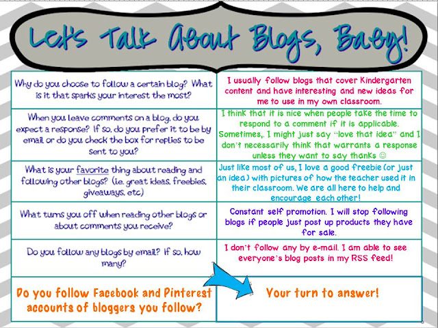 I finally saw this linky, so I’m a little late to commenting, but better late than never. Personally, I don’t follow anything on Facebook because I like my privacy and try not to connect my full name with school or blogging things. I do follow some on Pinterest since I use it for school, but due to my privacy concerns, my Pinterest name isn’t my real name (it’s Maggie Imaginary). I also don’t like blogs that just sell things because as a first year teacher who will be teaching abroad, I don’t have the money to buy them!