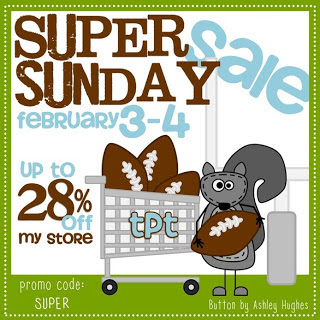 In case you haven’t seen every single blog post from every teacher blogger out there…there’s a sale going on today! Some of us are putting on a sale on top of the sale! If you type in “Super” you get 28% off today and tomorrow.  I plan on stocking up myself today! Loved this button…so I grabbed it 🙂 How cute is that squirrel?